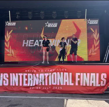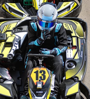 Roman Curtis celebrating a heat win in the Sodi World Series Final 2025 in Spain, beating all the world junior drivers in this race!